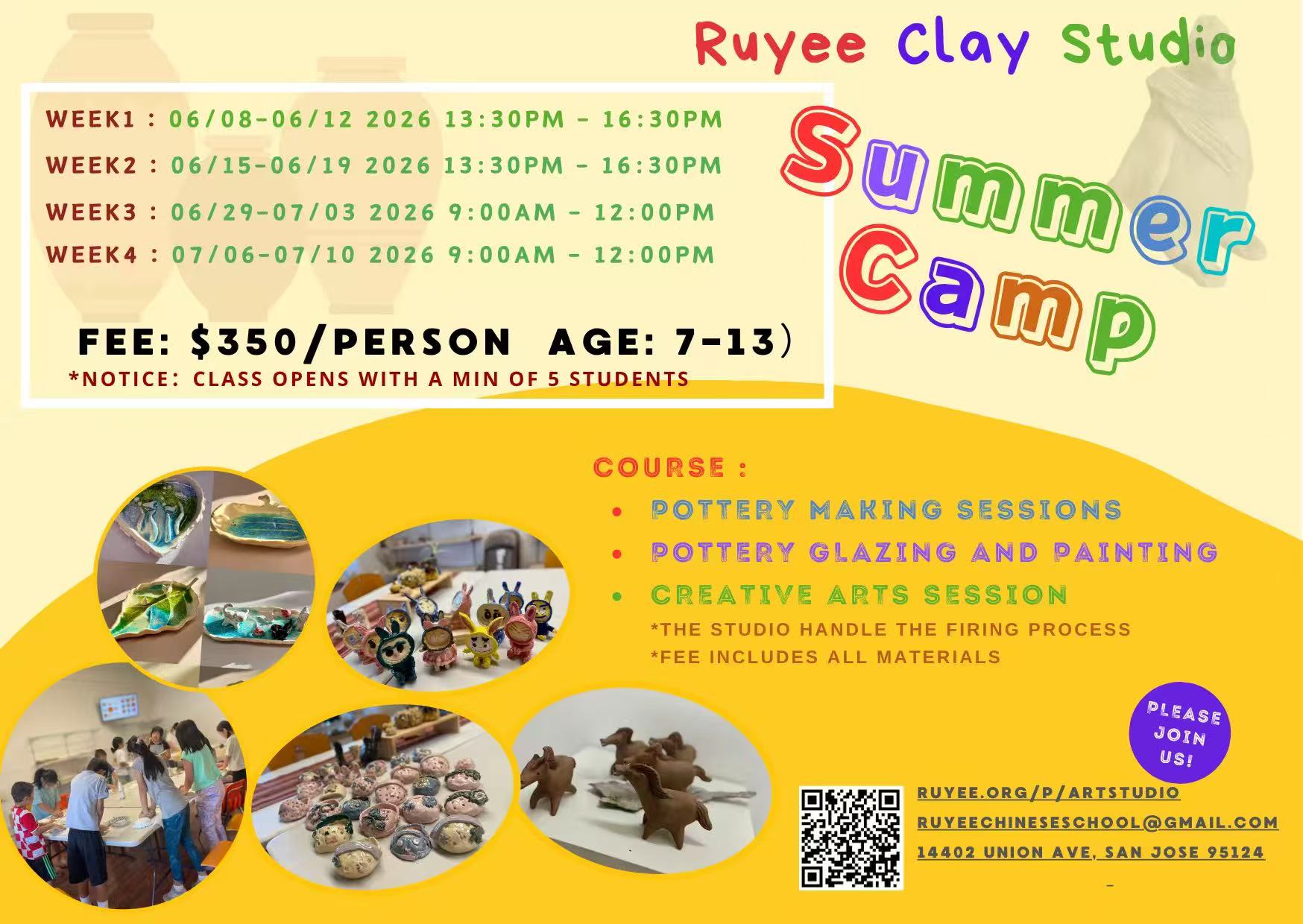 2026 Clay Studio Summer Camp Week1 06/08-06/12 13:30PM - 16:30PM